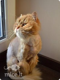 Ten liūdintis katinėlis buvo apžiūrėtas, patikrinta „grybelio“ versija dėl išplikusio kailio, bet ši nepasitvirtino. Pasirodo, kailis išplikęs dėl išdraskytų milžiniškų „kaltūnų“. Taip pat oranžinis gražuolis turėjo ausų erkučių, kurios per laiką būnant stacionare buvo išgydytos. Dabar Čiakas jau visiškai atsigavęs, taip pat pavasario ir aišku neiššukuojamų „kaltūnų“ proga teko pasipuošti žavia liūto šukuosena! Ataugus plaukučiams Čiakas bus ilgaplaukis karališkas gražuolis.